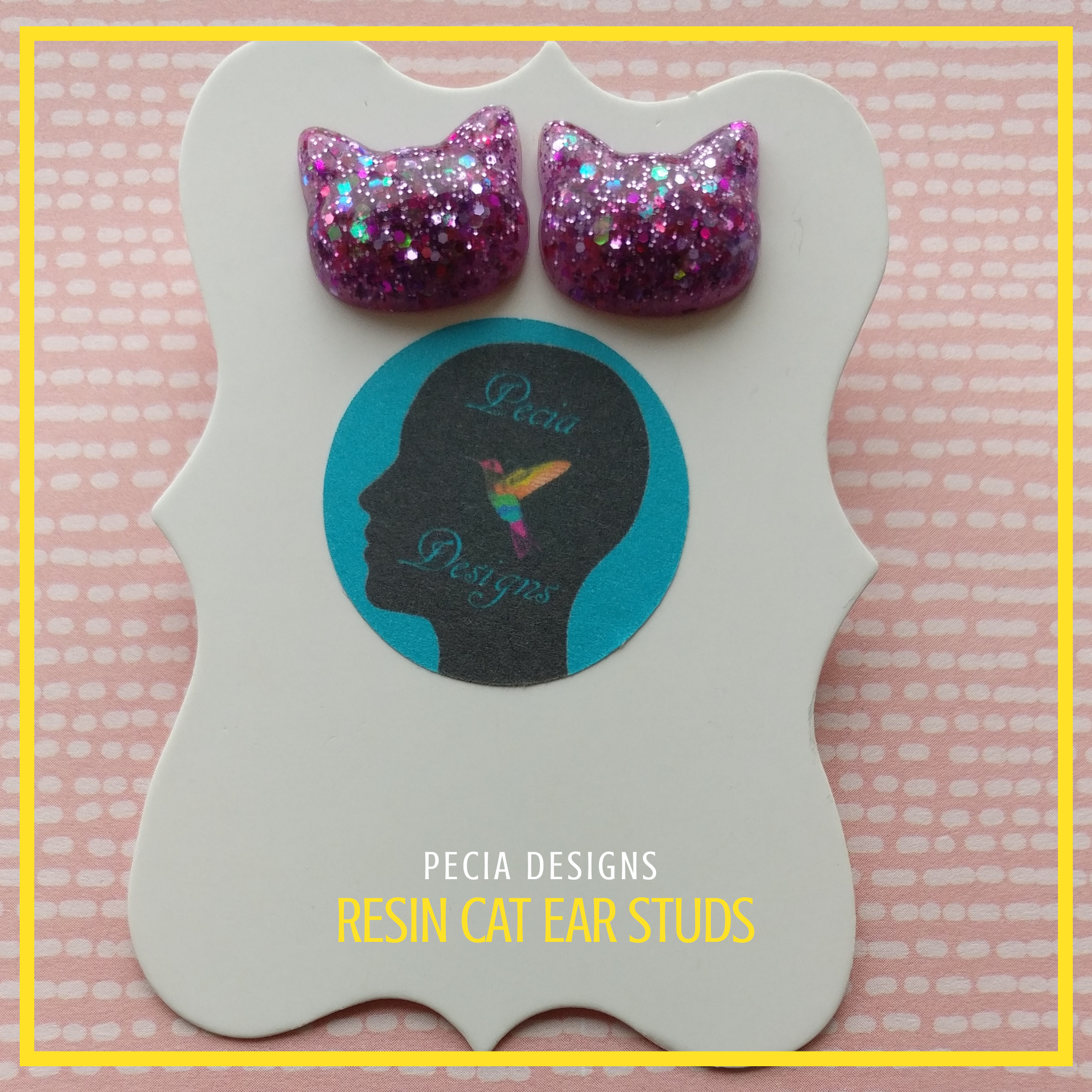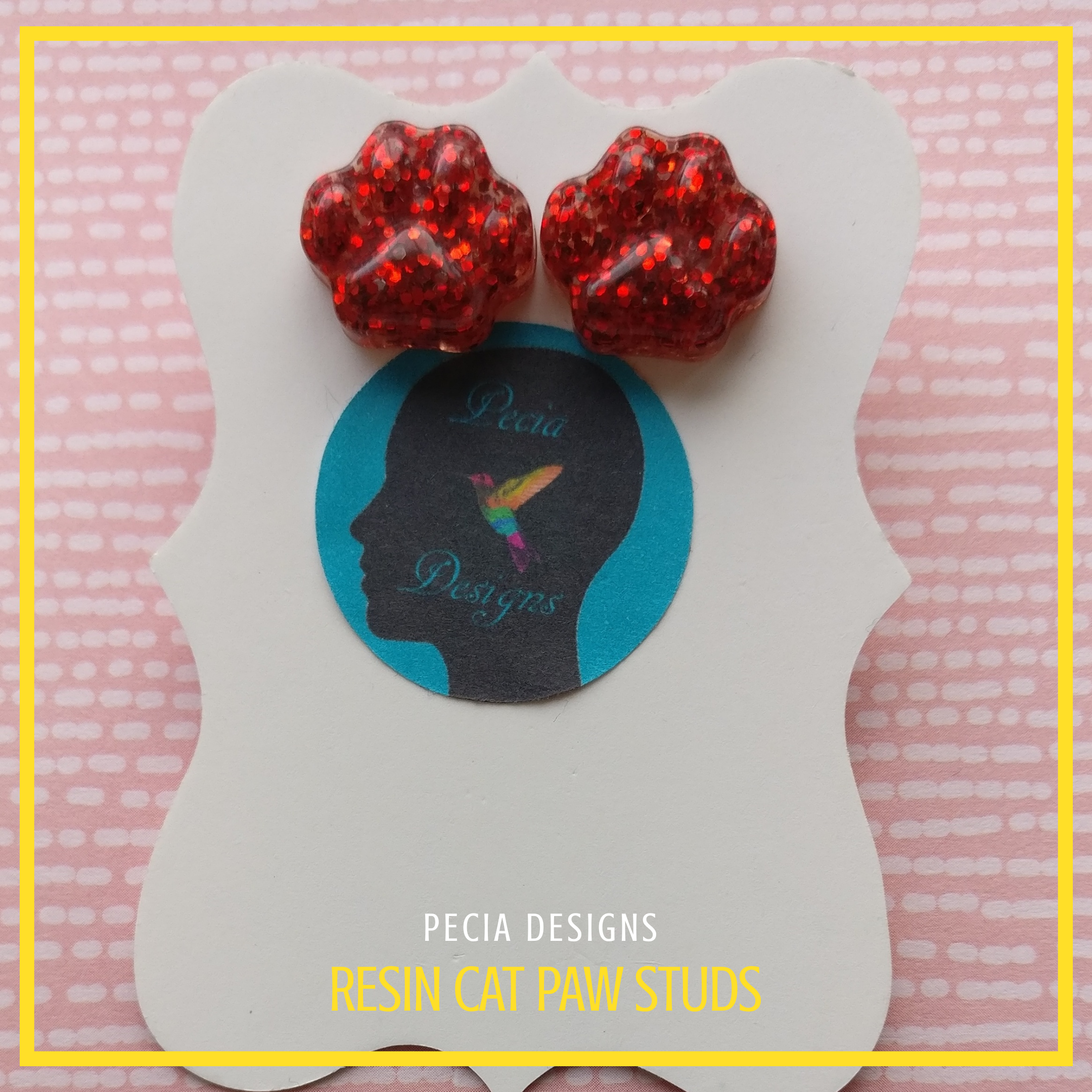 Baby Pink handmixed resin paw studs, with light pink epoxy resin pigment, pink & iridescent glitter on a silver plate stud and butterfly back COST: £4+ £2.45 P&P