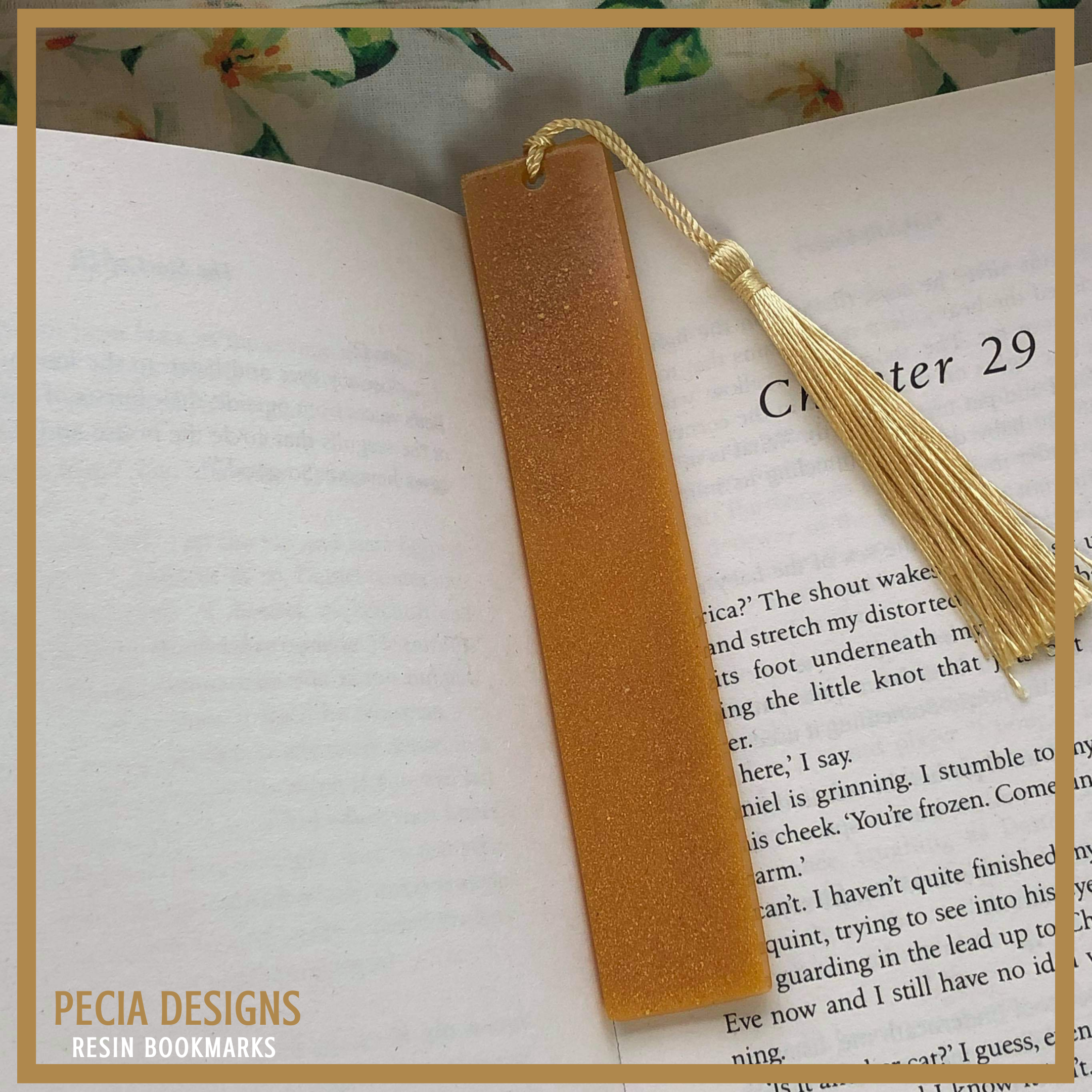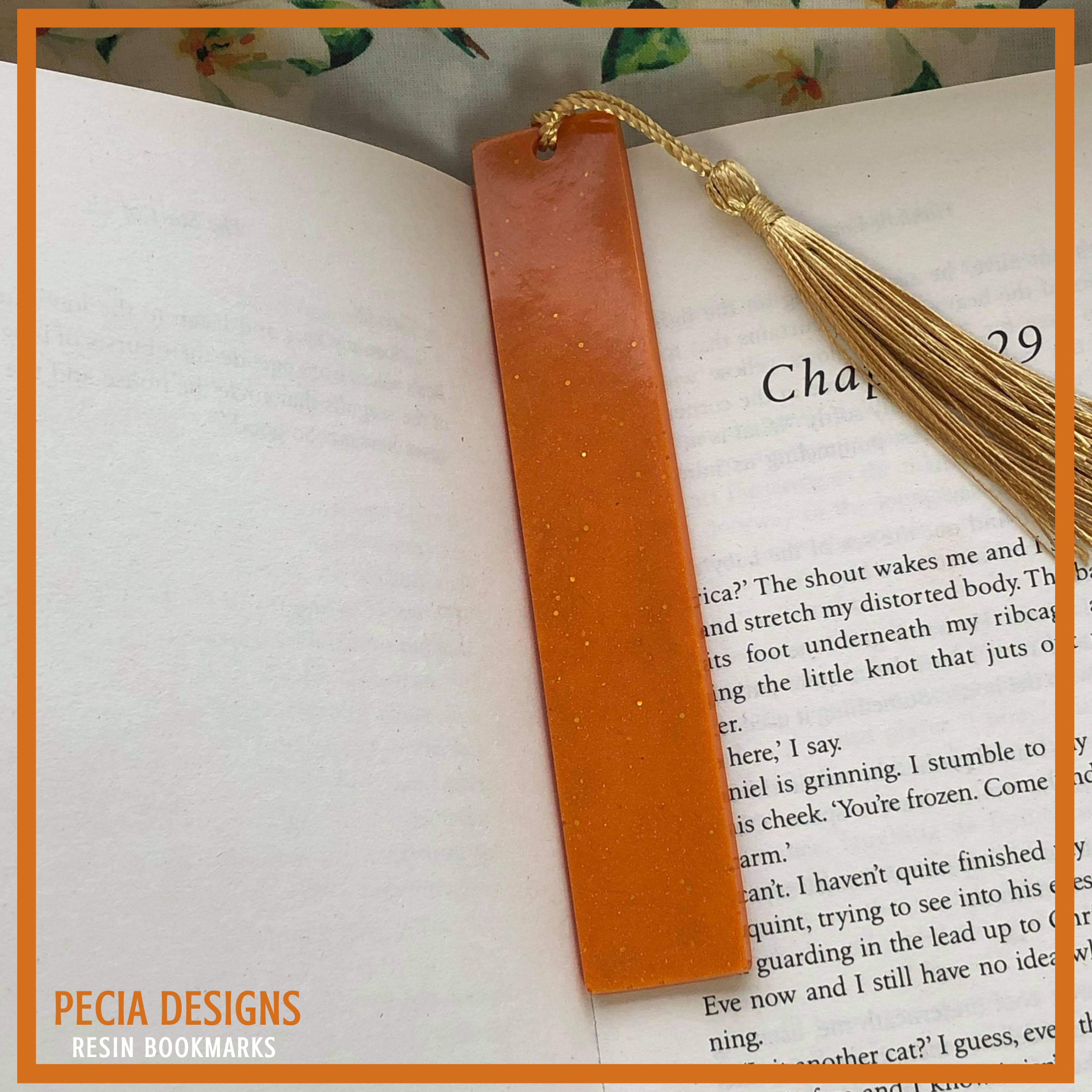 13.5cm bookmark, made with clear resin with a mix of orange, yellow pigment. Mixed into the resin is also some mustard micro shimmer dust. COST: £6+ £2.45 P&P